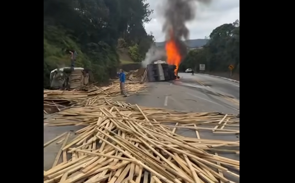 Segundo consta no B.O., ao destombar o caminhão – que pegou fogo – foi encontrado um dos carros de passeio sob o veículo. Nele, o motorista estava em óbito. A carga de madeira ficou espalhada pela pista, e foi retirada por tratores.