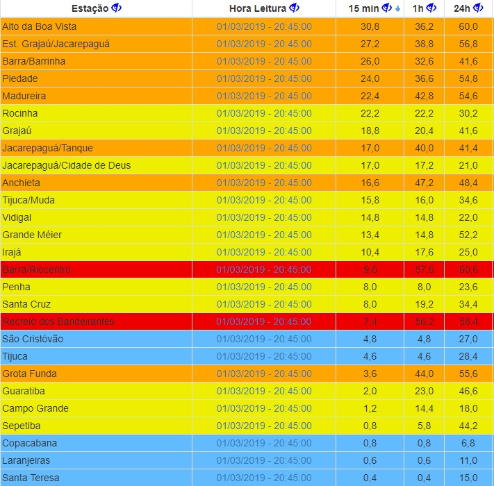 Nos últimos 15 minutos, o sistema Alerta Rio, da prefeitura, registrou chuva forte e muito forte nas zonas Norte e Oeste. No Centro do Rio, a tendência é que o temporal se intensifique ainda mais.